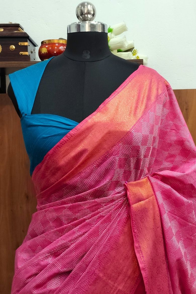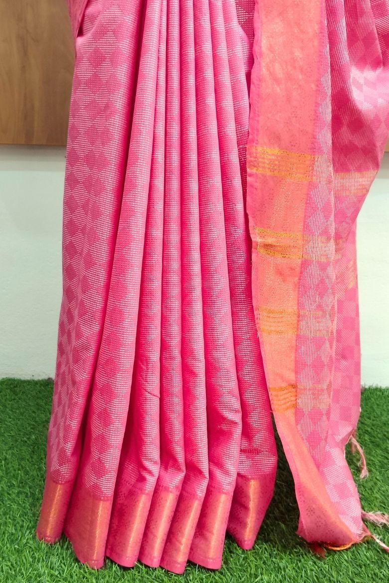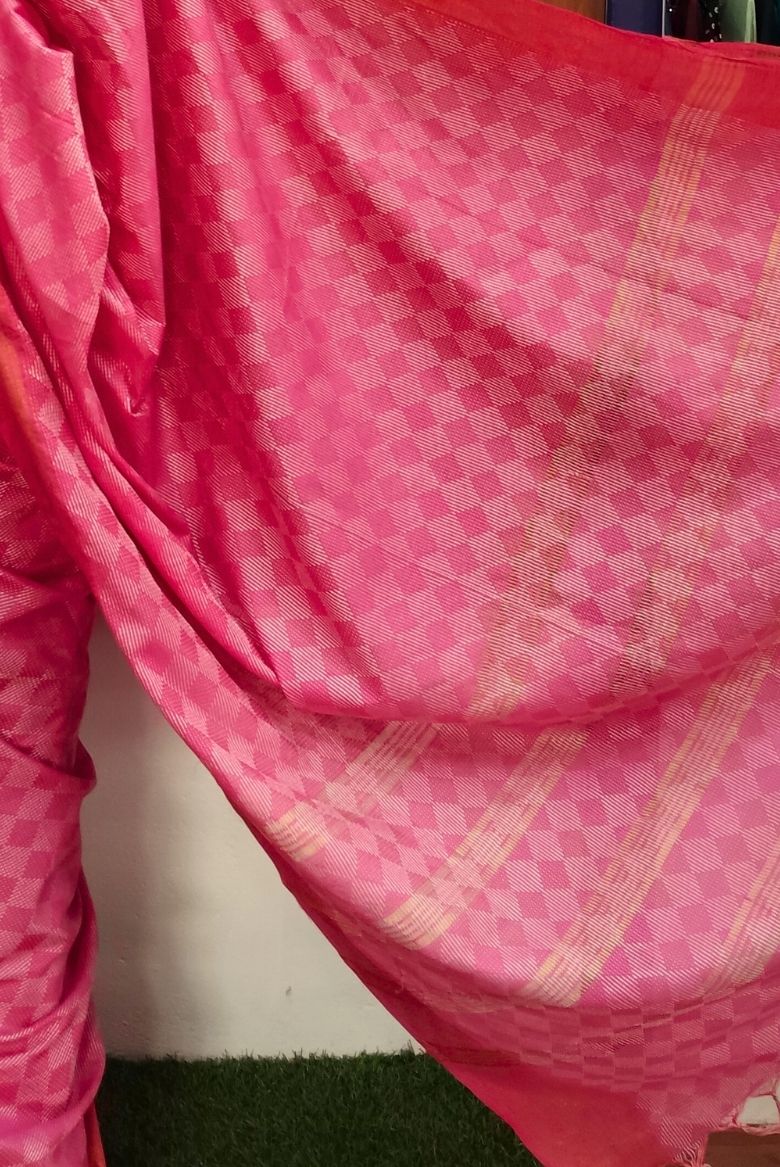 Beautiful Pink Kota Silk Jacquard Weaving Bhagalpuri Saree