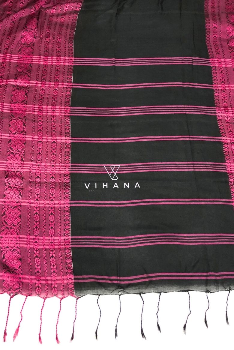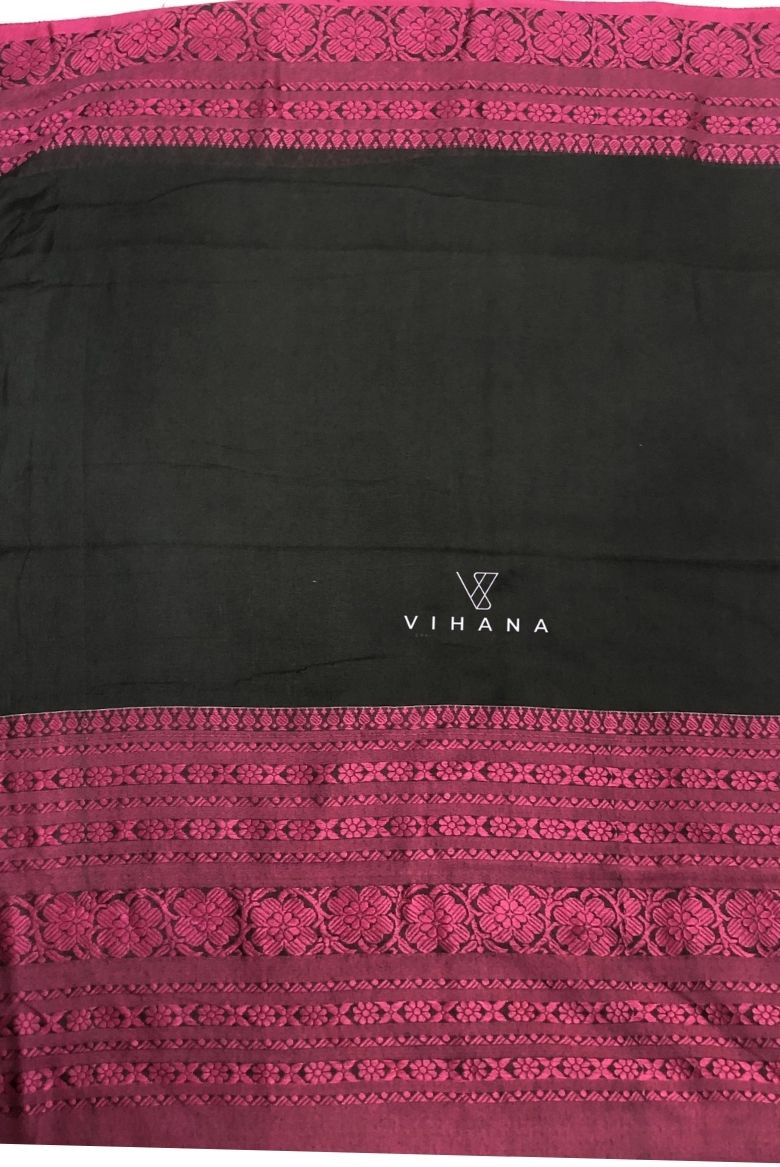 Black and Magenta Begampuri Bengal Cotton Saree