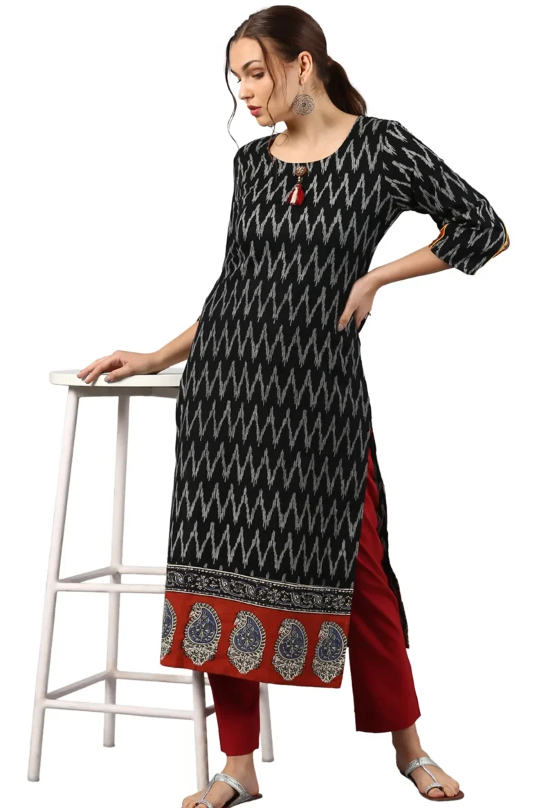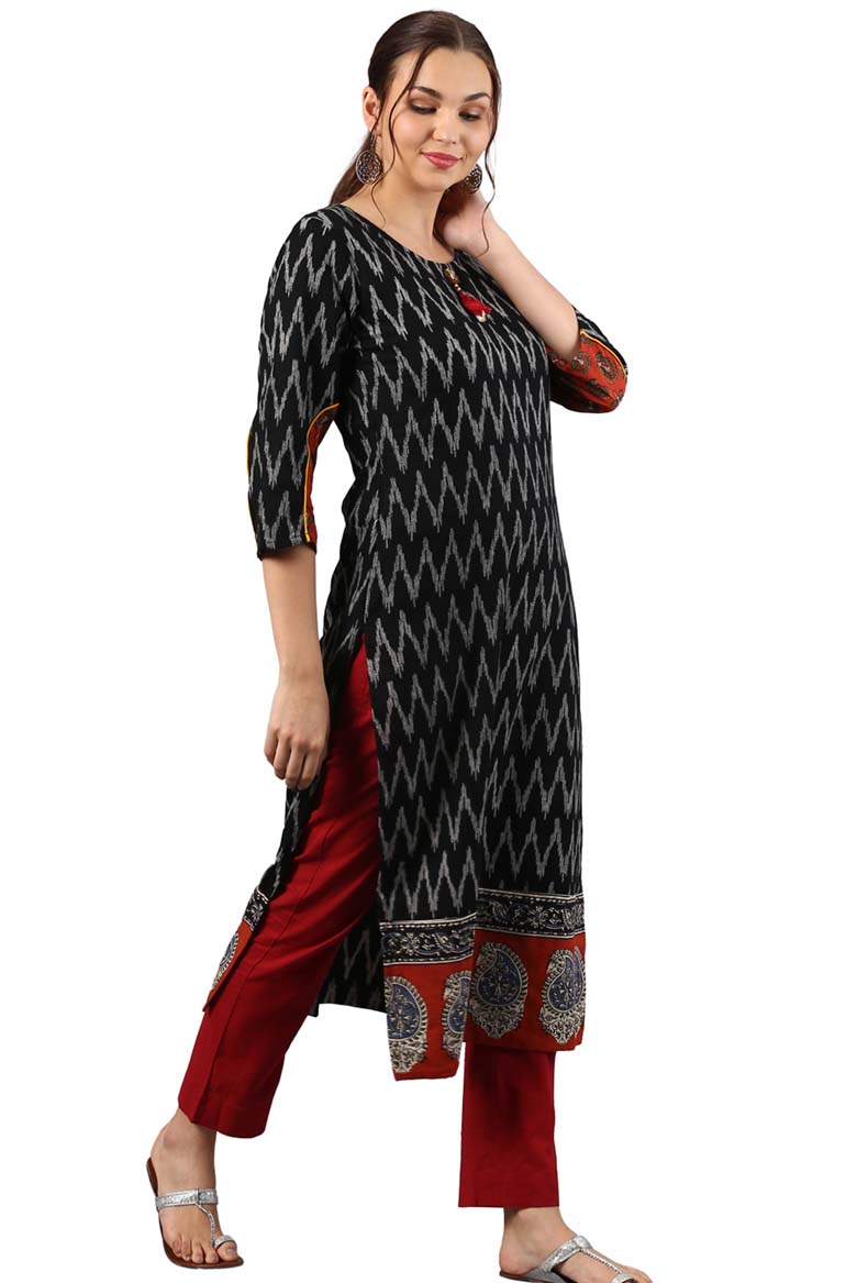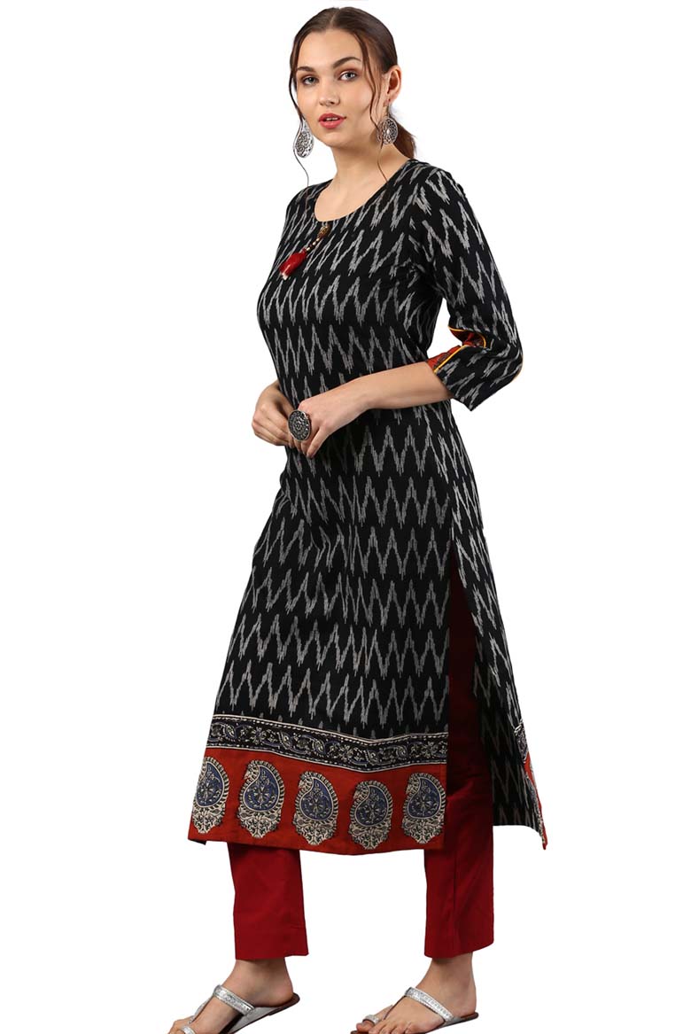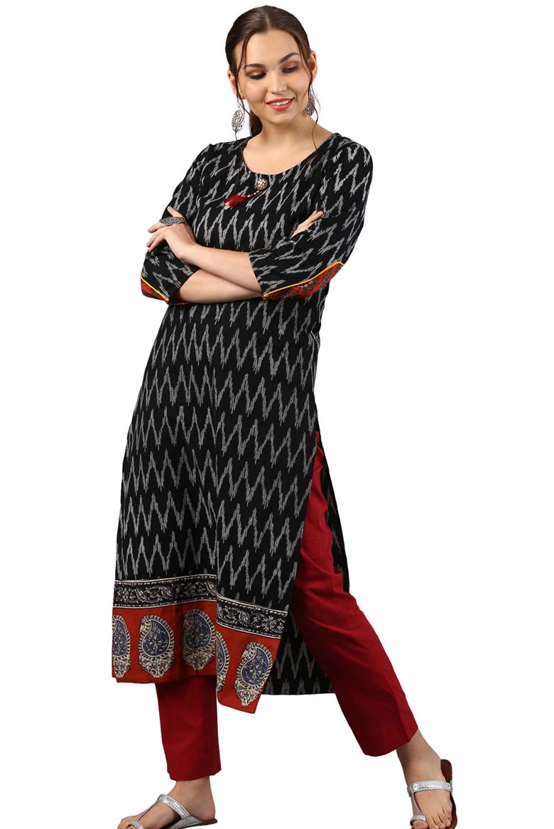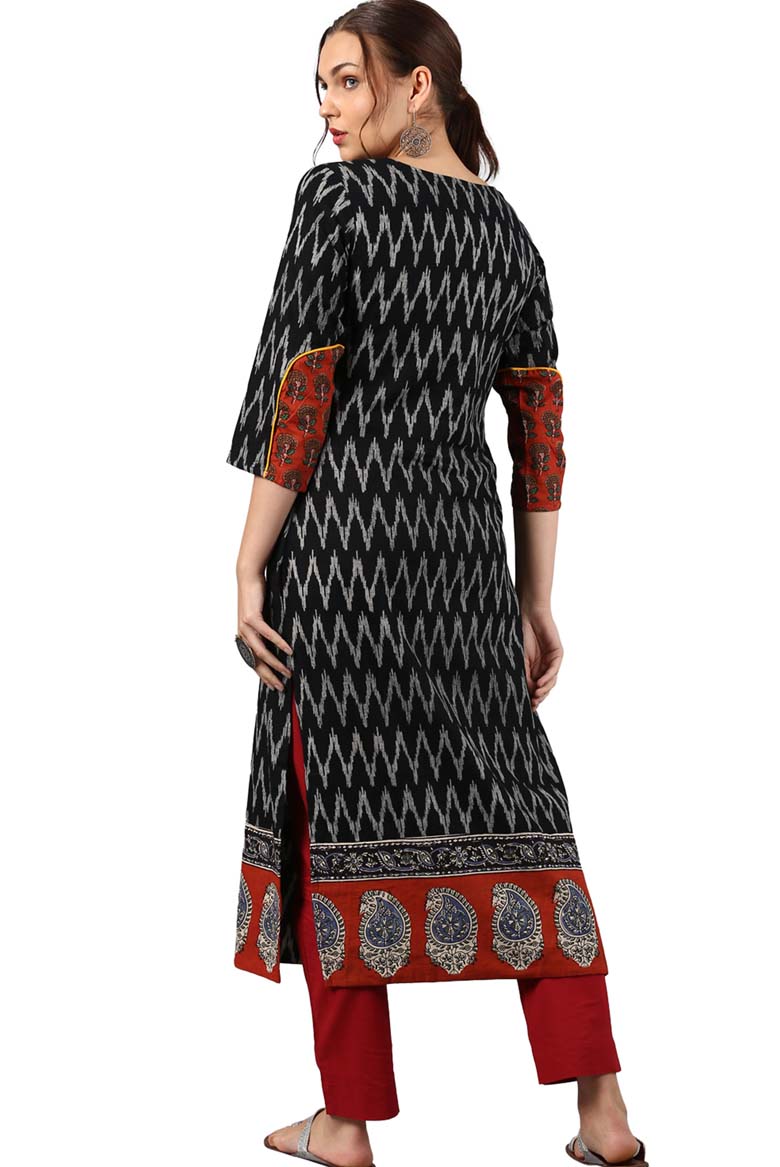 Black Cotton Ikat Straight Kurta