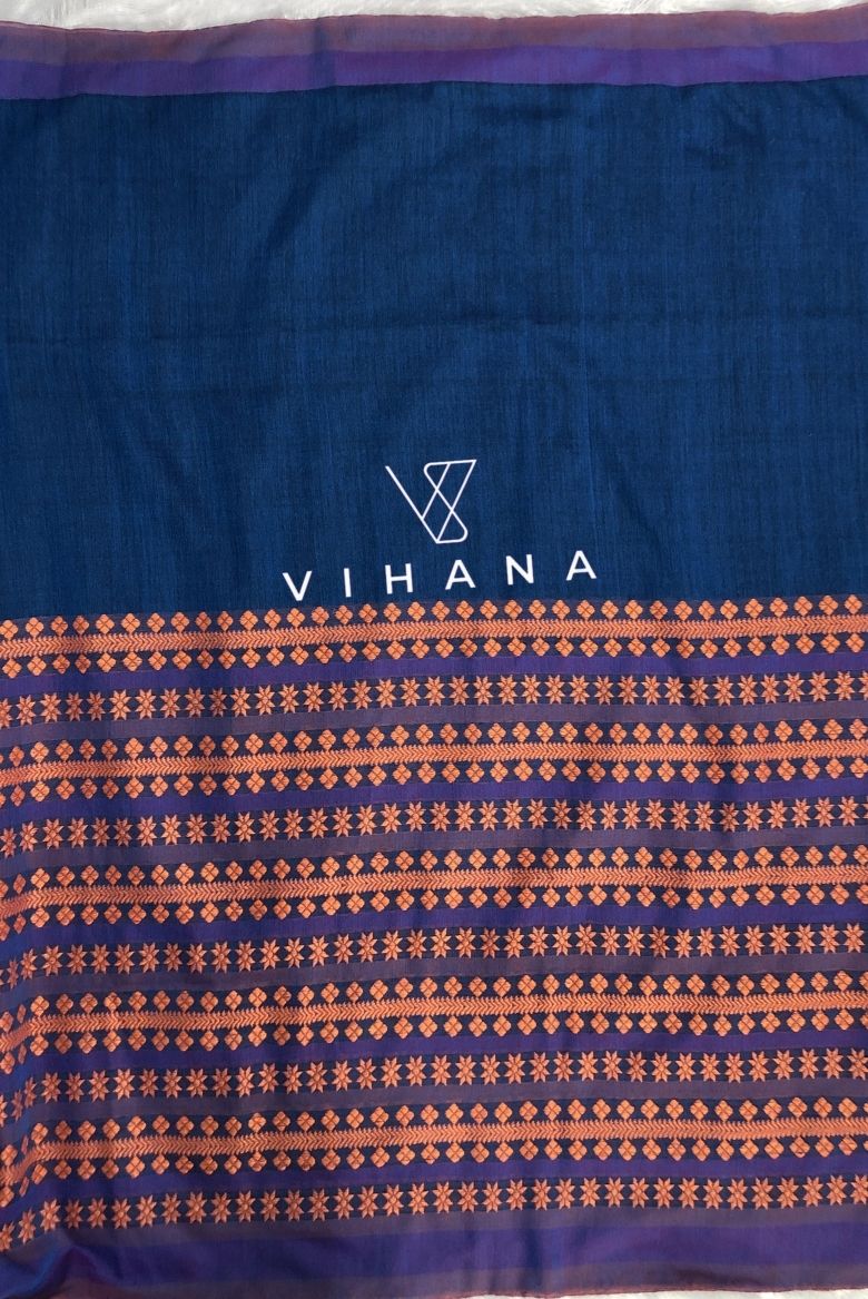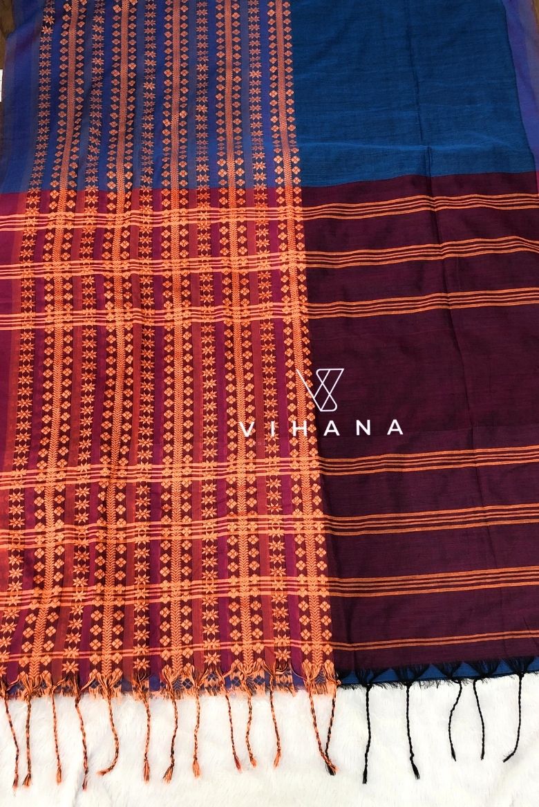Blue and Light Orange Begampuri Bengal Cotton Saree