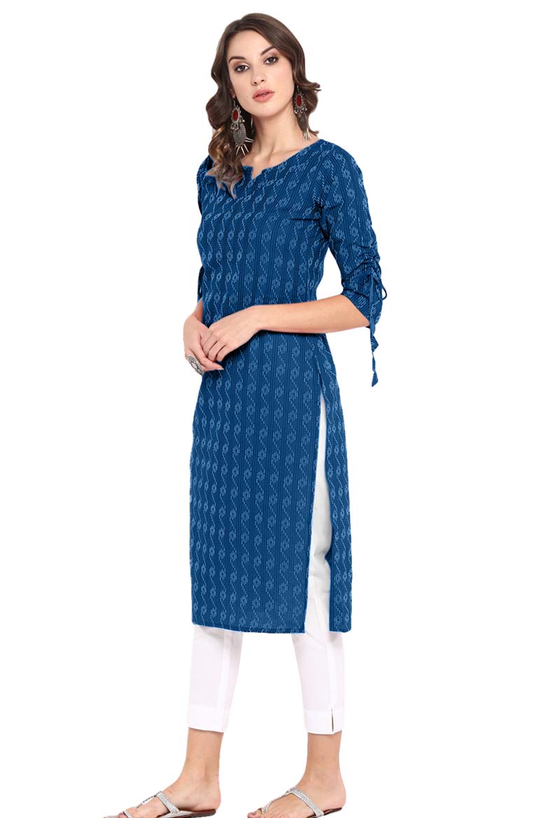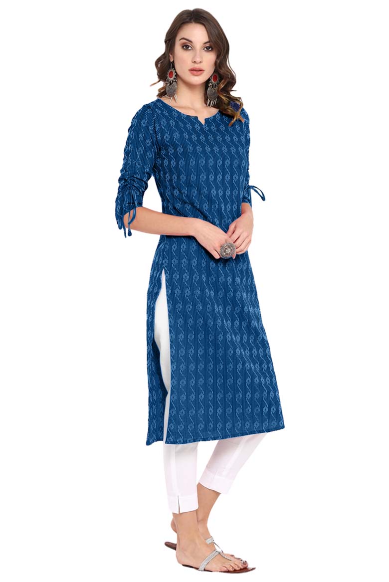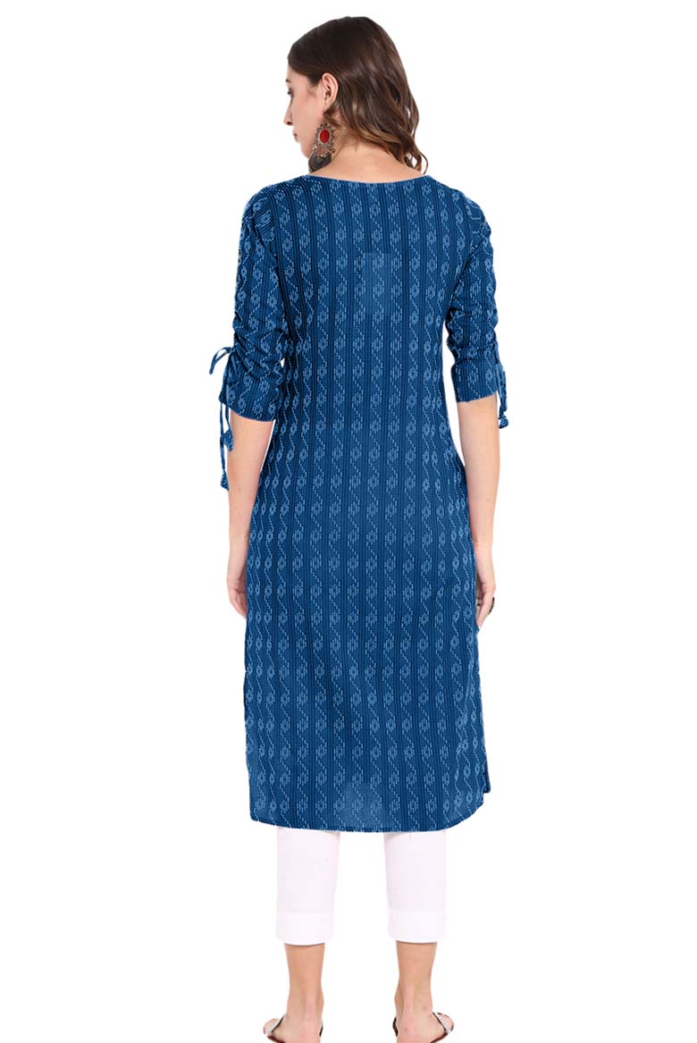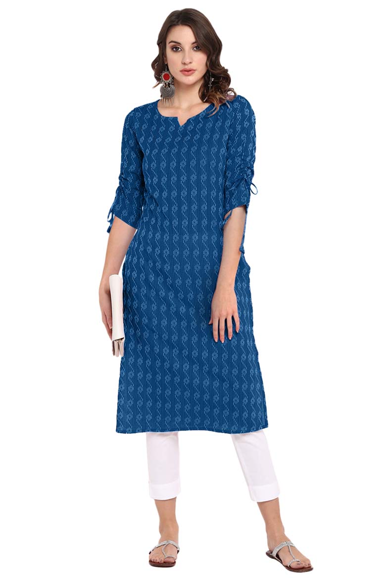 Blue Cotton Woven Design Straight Kurta
