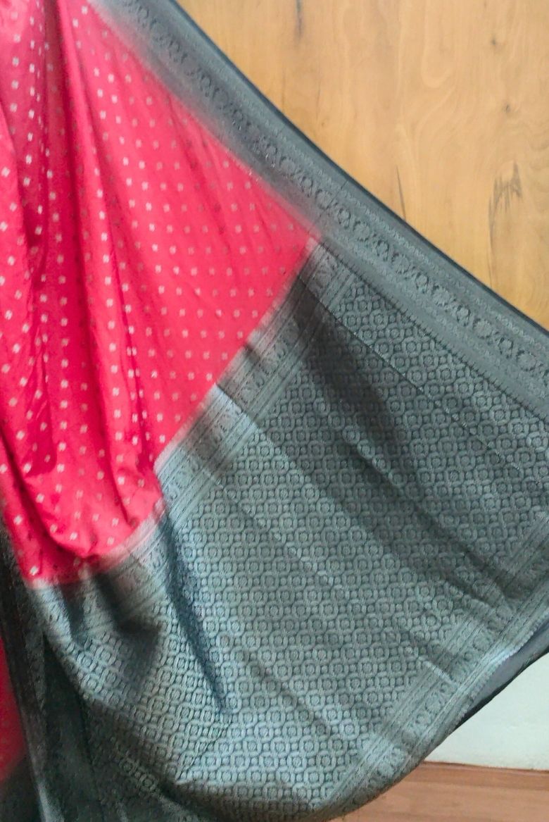Bright Maroon Crimson Viscose Georgette Blend Saree with Contrast Black Border