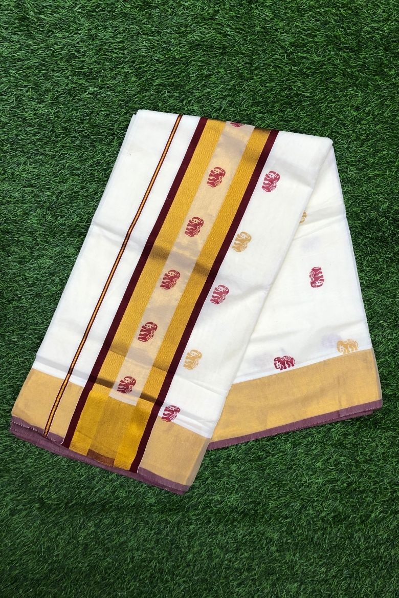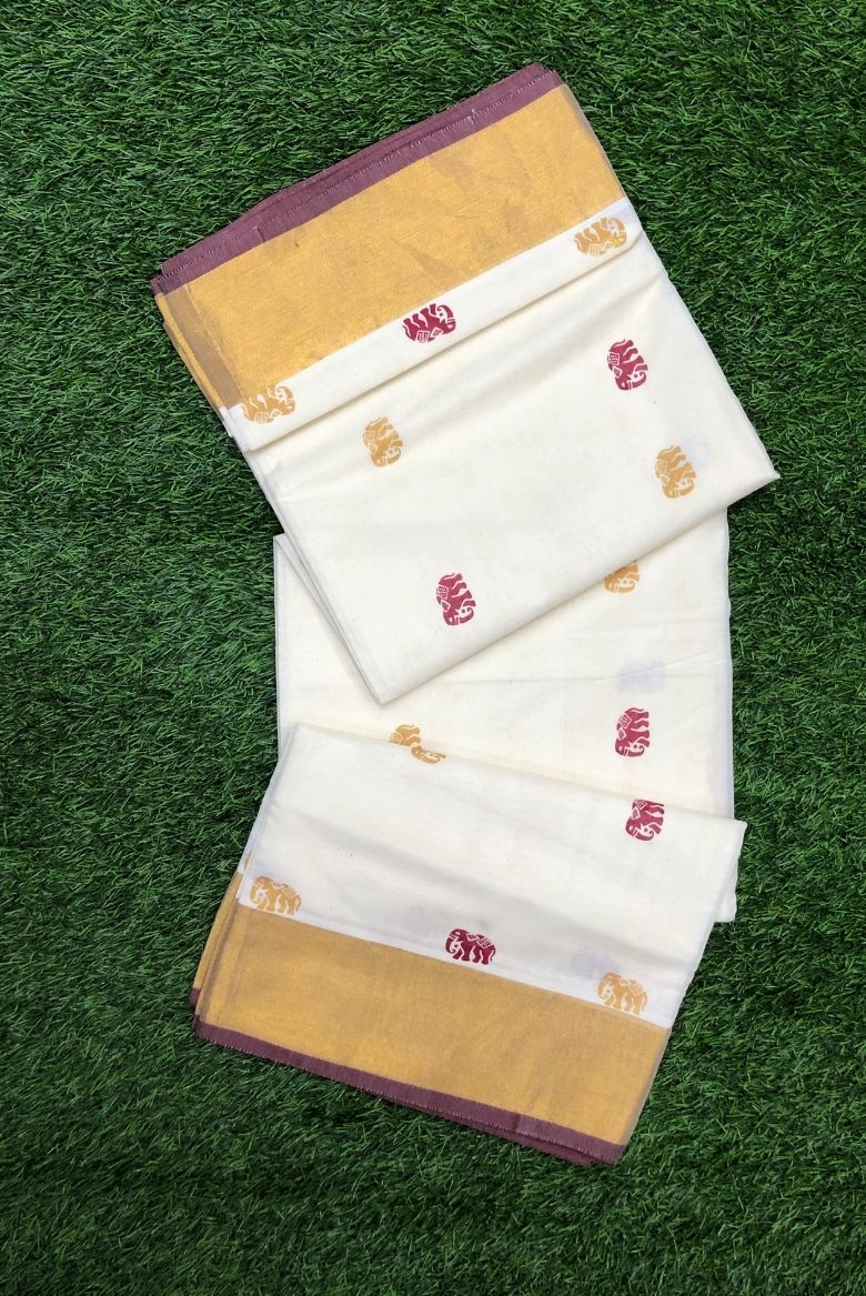 Elegant Kerala Kasavu Saree With Elephant Motifs