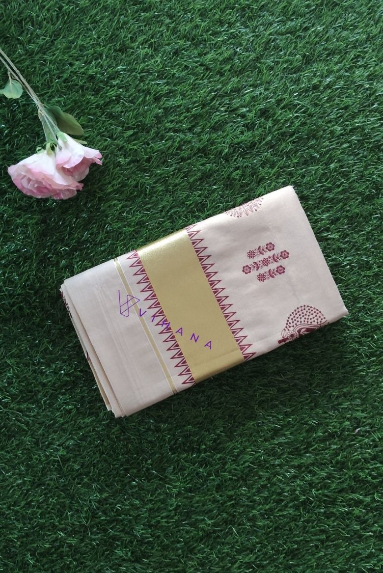 Golden Tissue Set Saree with Maroon Floral Motifs
