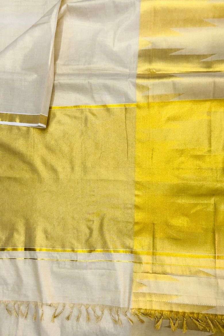 Golden Tissue Set Saree with Temple Print Border