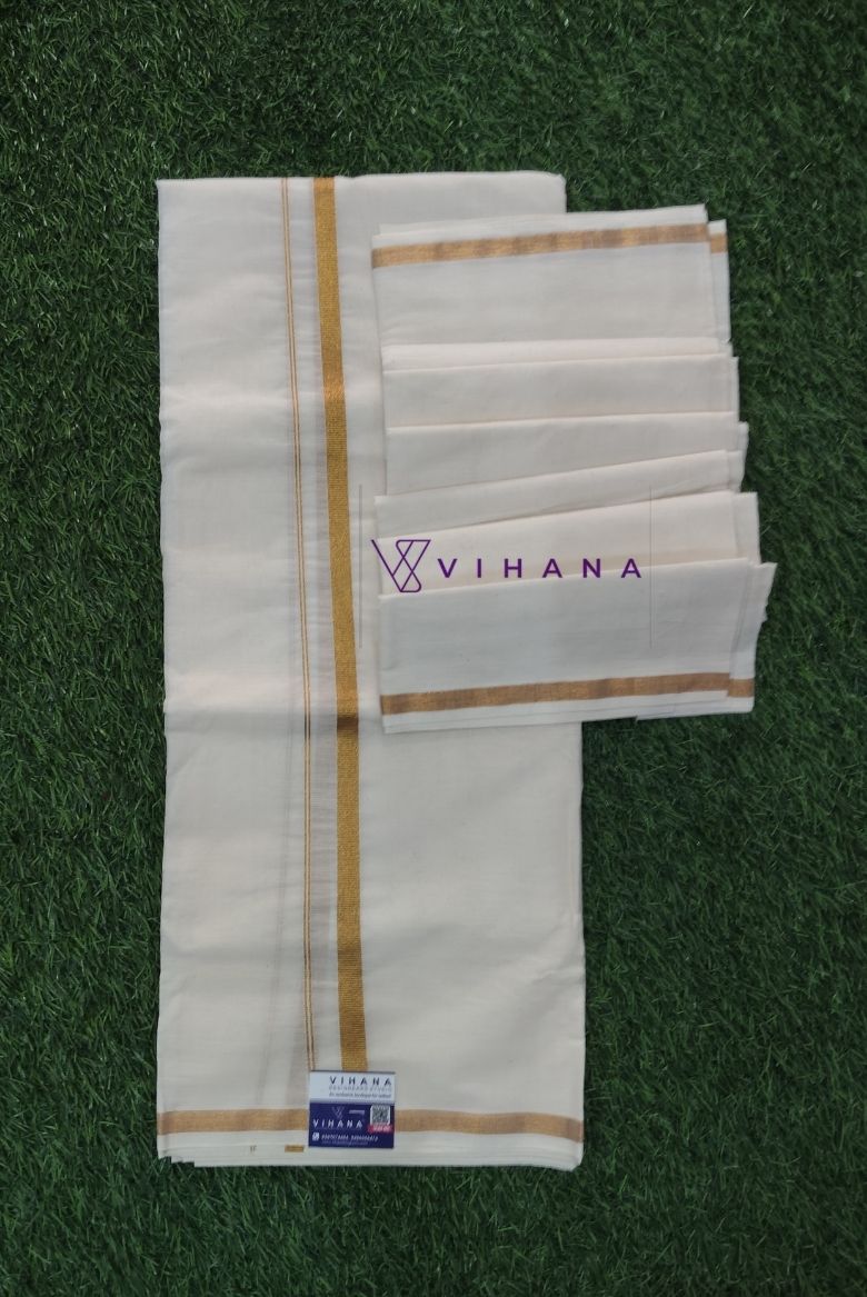 Kerala Cotton Set Mundu with Golden Border