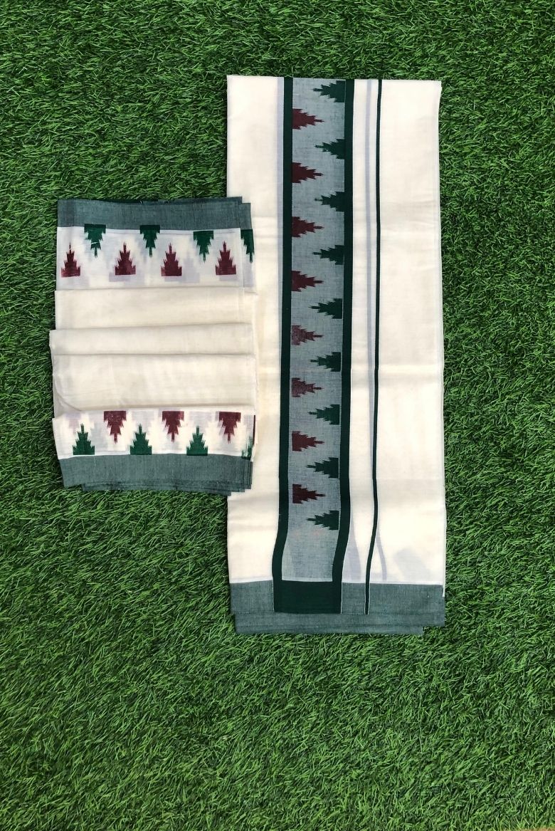Kerala Cotton Set Mundu with Ikat Border