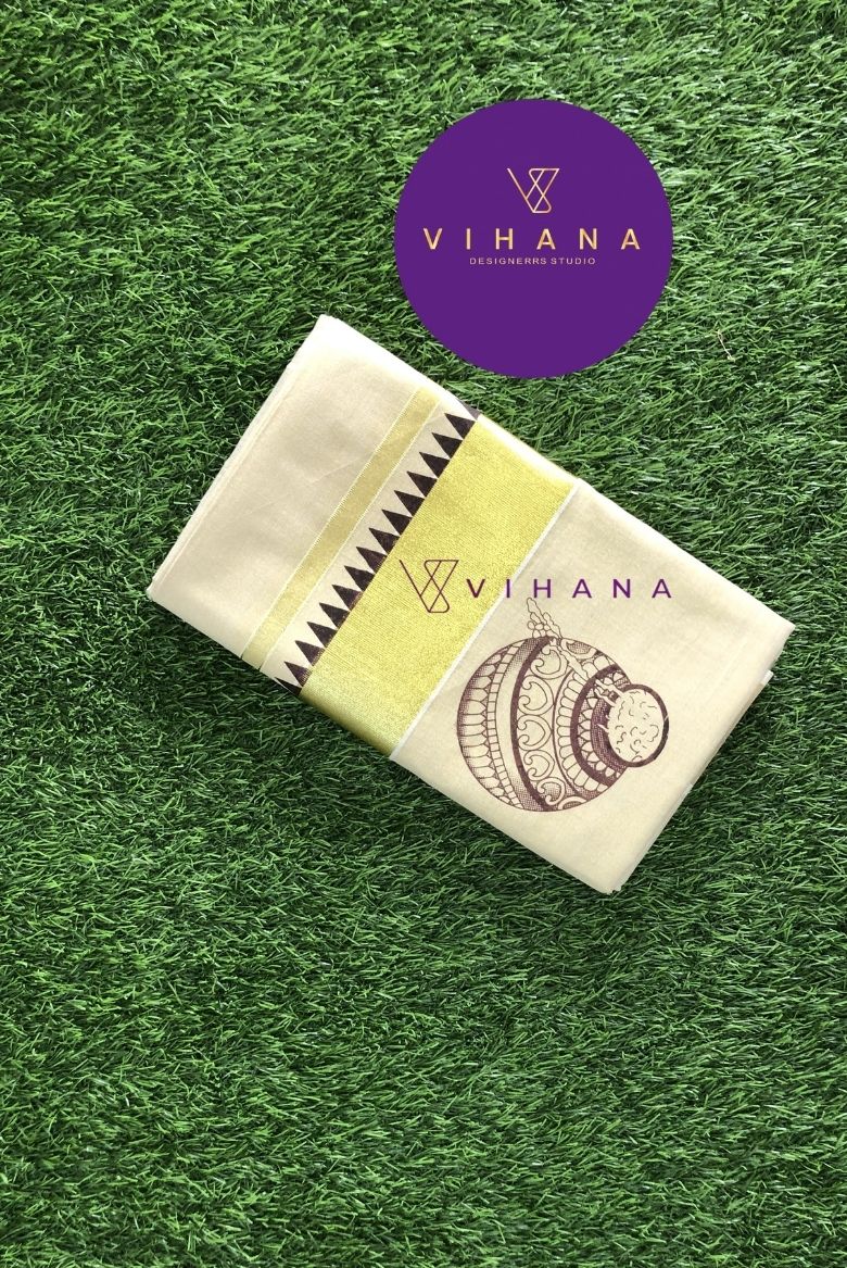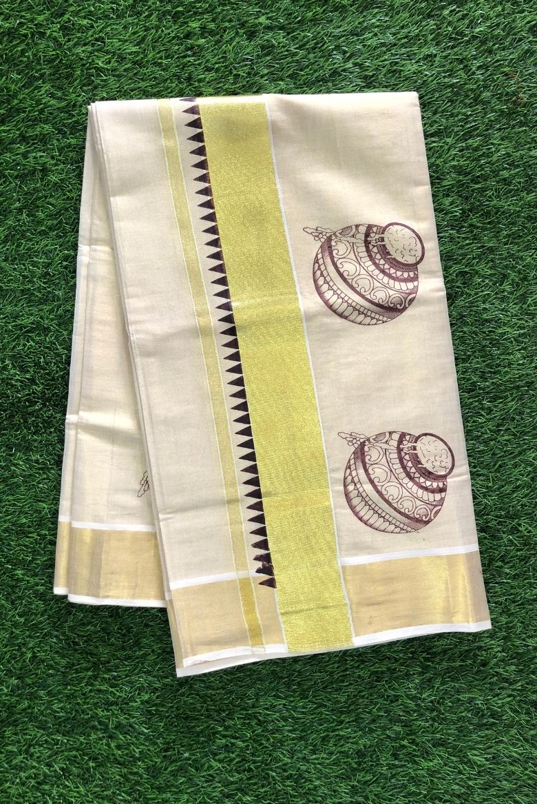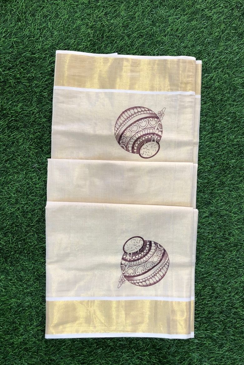 Kerala Tissue Kasavu Saree With Butter Pot Motif