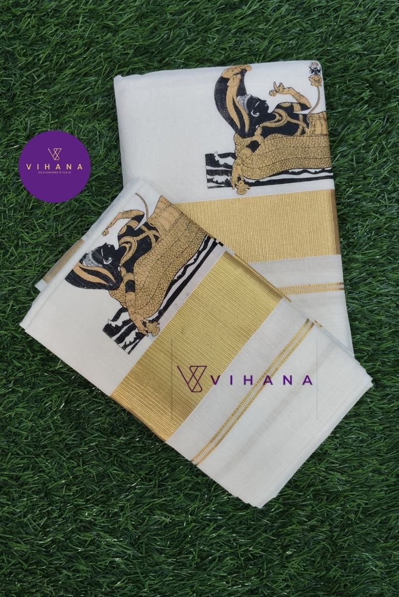 Set mundu Design: Lord Mahavishnu prints