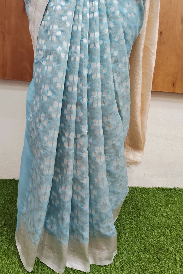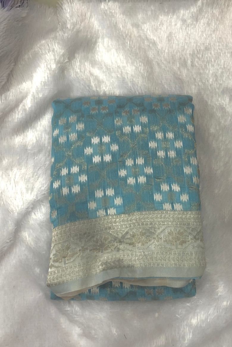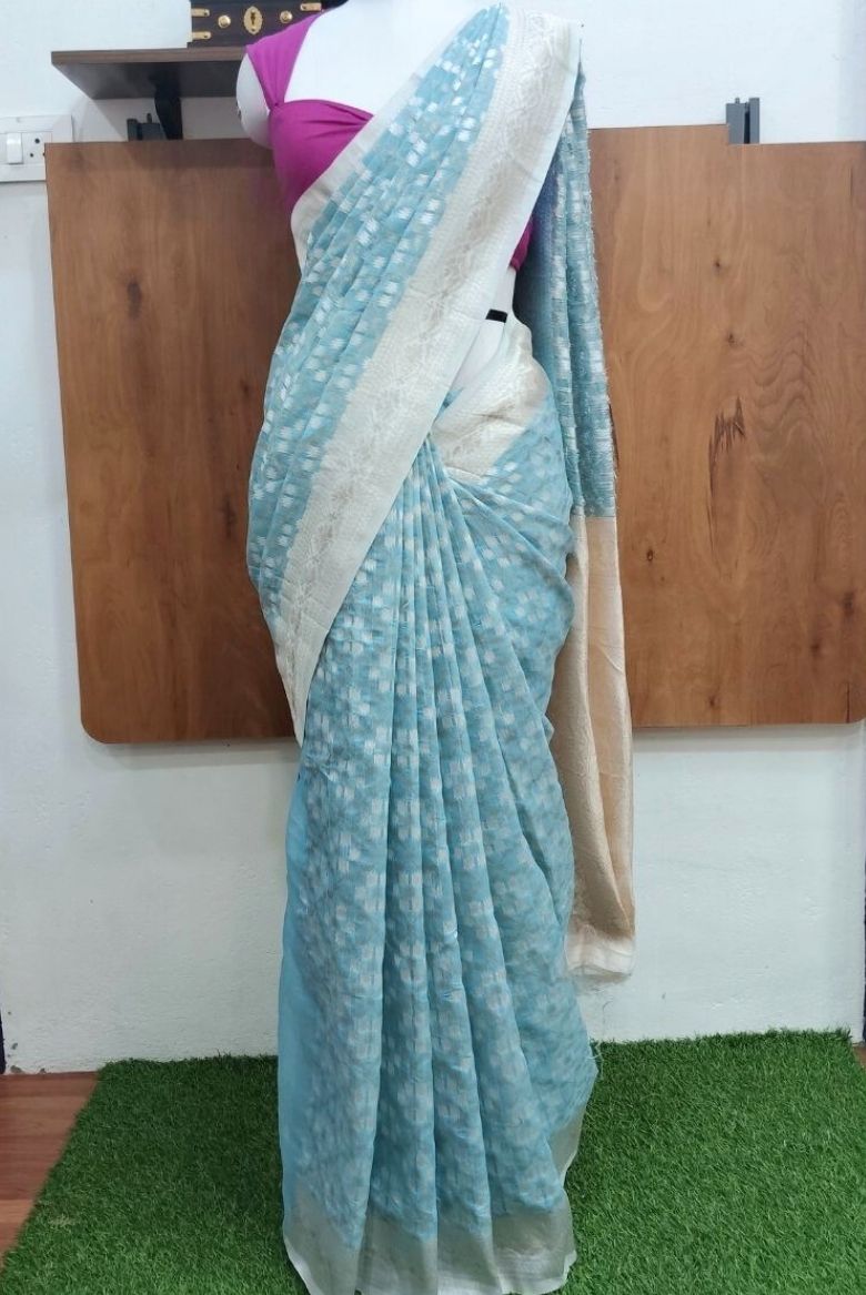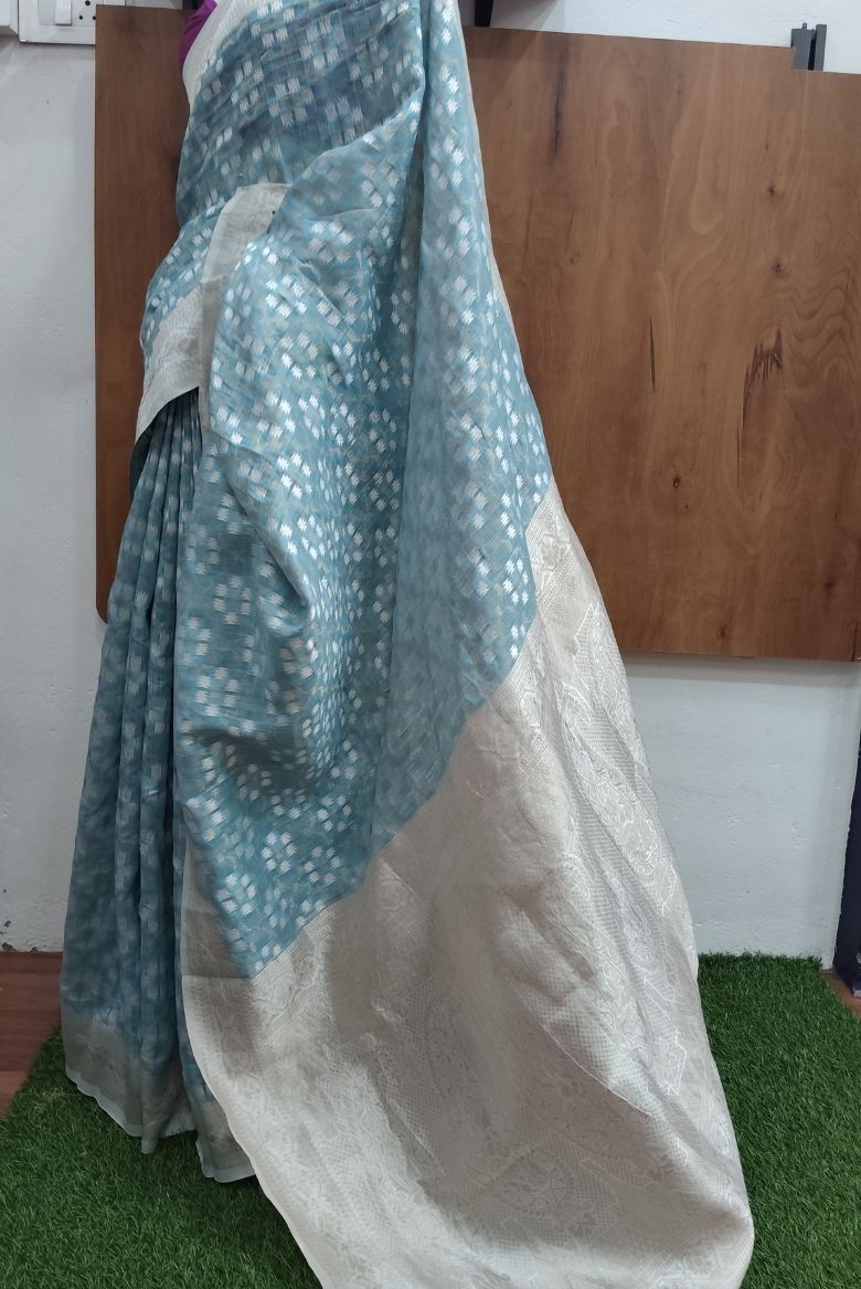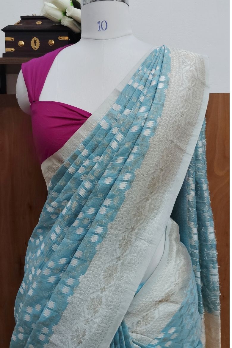Light Blue Cotton Linen Saree