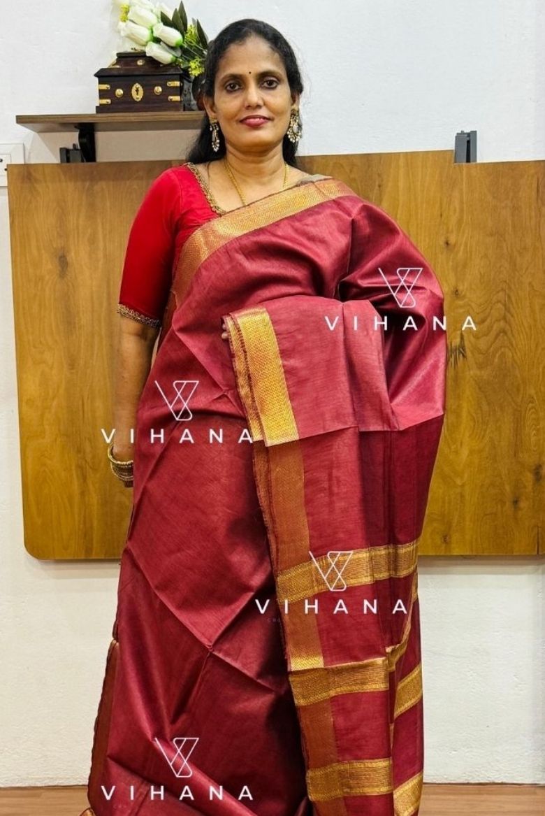 Maroon Maheswari Semi Tussar Silk Saree