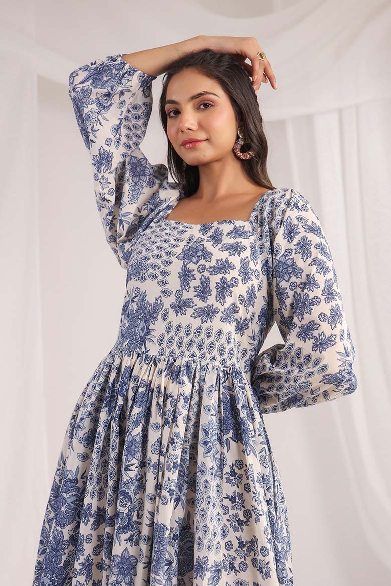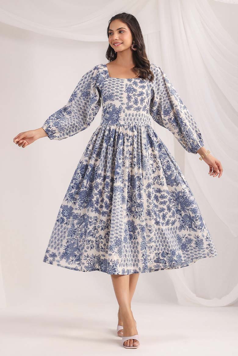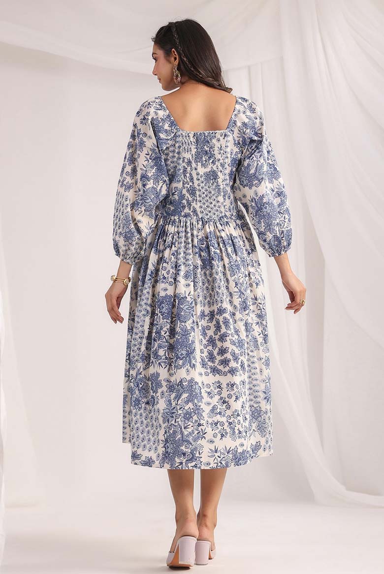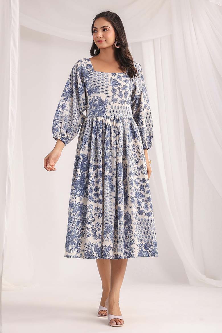 Elevate your wardrobe with this Gathered Dress in a delightful shade of Off-white, perfect for embracing your fashion style with confidence. Featuring a floral print and a square neck, the cotton dress exudes contemporary charm. Designed with balloon sleeves and, it offers both comfort and style perfect for any casual brunch date or girls’ outing. Dress to impress and slay any occasion effortlessly with this flattering dress. Complete your look by adding minimal accessories and letting your inner radiance shine.