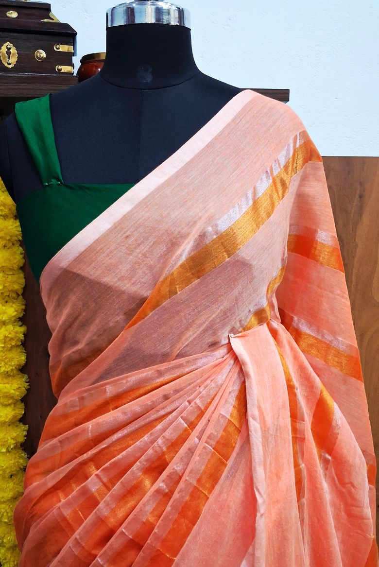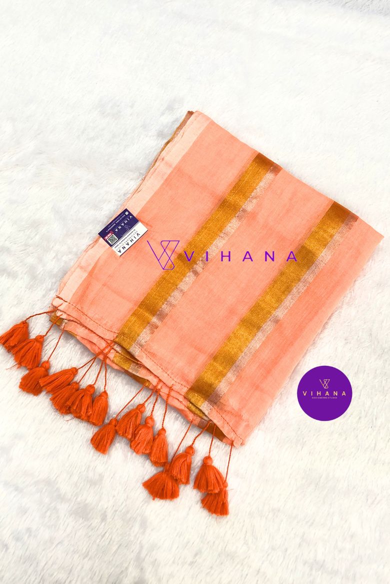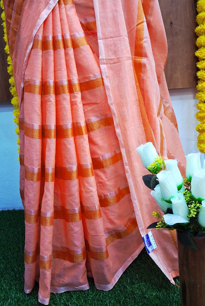 Orange 120 Count Pure Mulcotton Saree