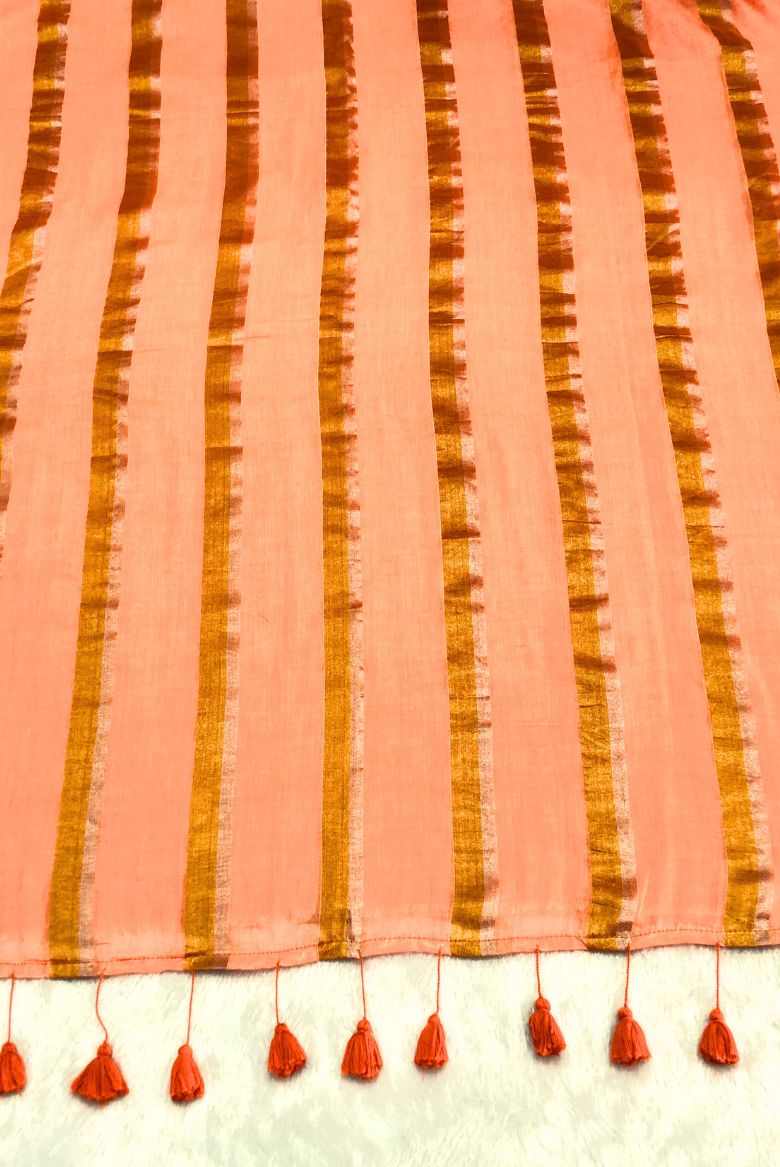 120 count pure Mul Cotton saree with golden zari stripes