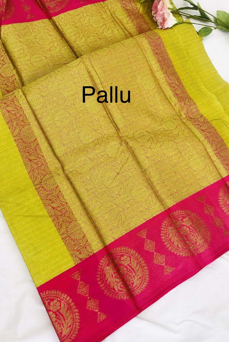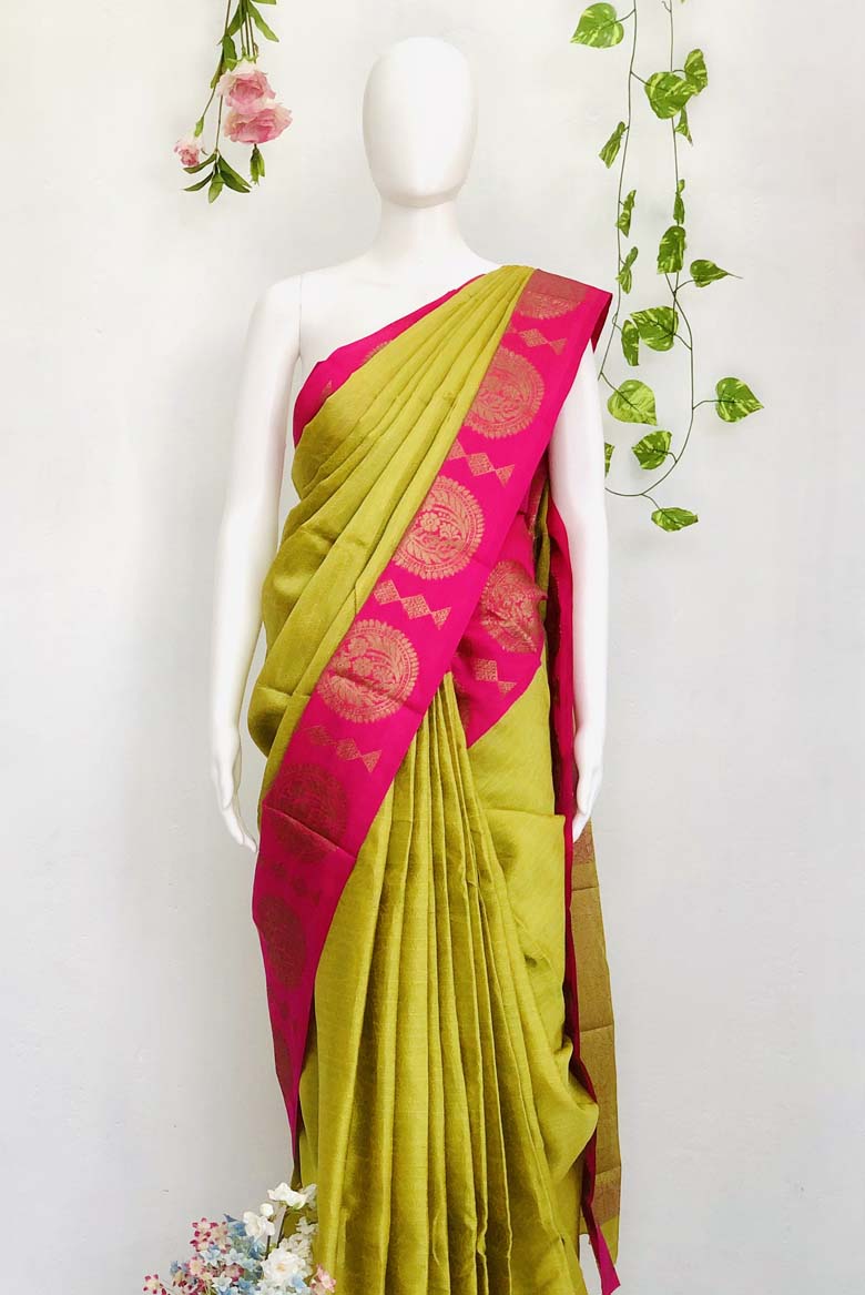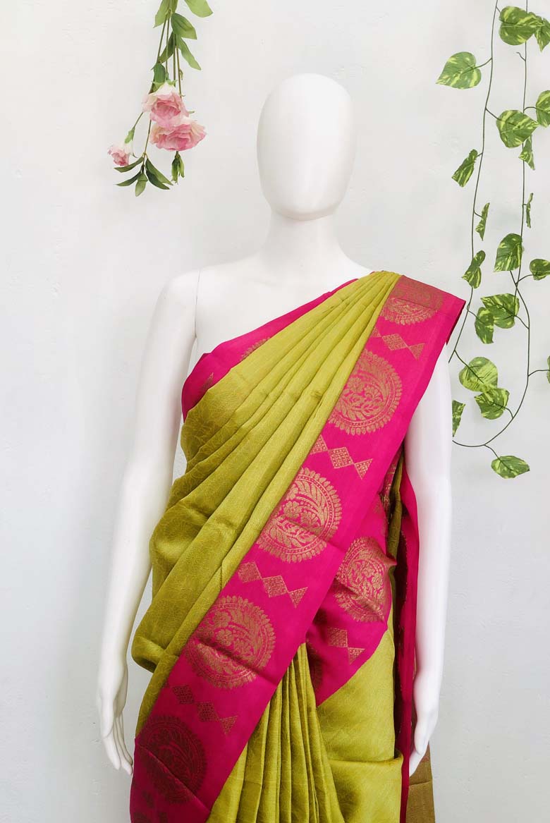 Parrot Green Banarasi Silk Saree with Unstitched running Blouse