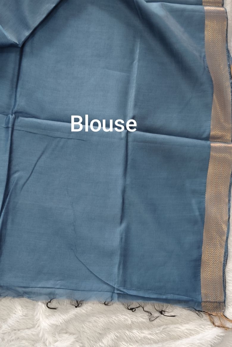 Pastel Blue Maheswari Semi Tussar Silk Saree