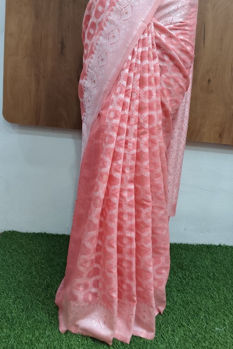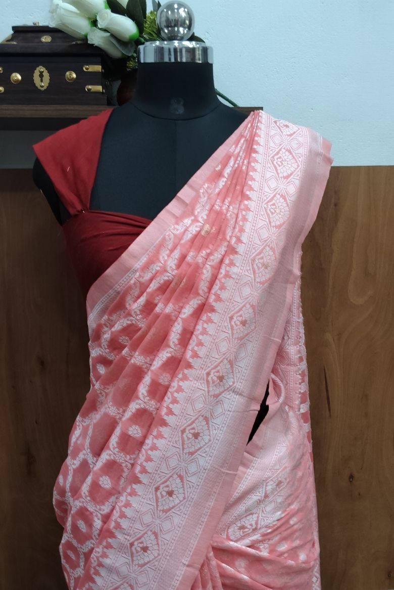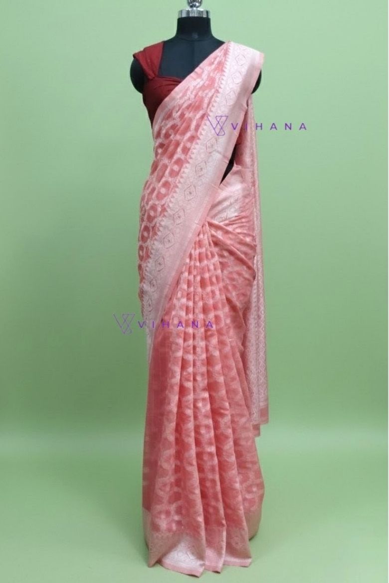 This woven spun cotton saree featuring delicate ethnic motifs allover the body and the Pallu is highlighted in geometrical , floral pattern