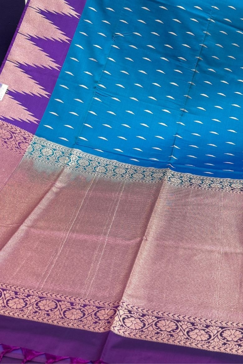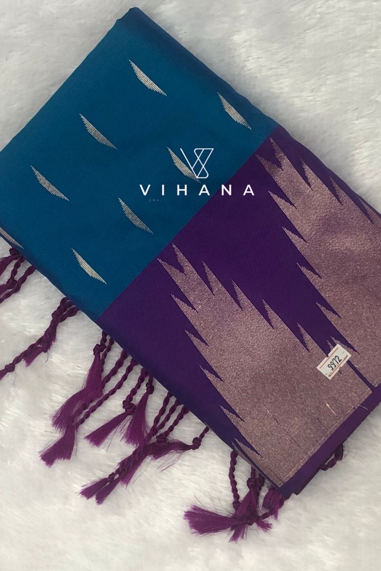 Peacock Blue and Royal Purple Kanjivaram Soft Silk Saree