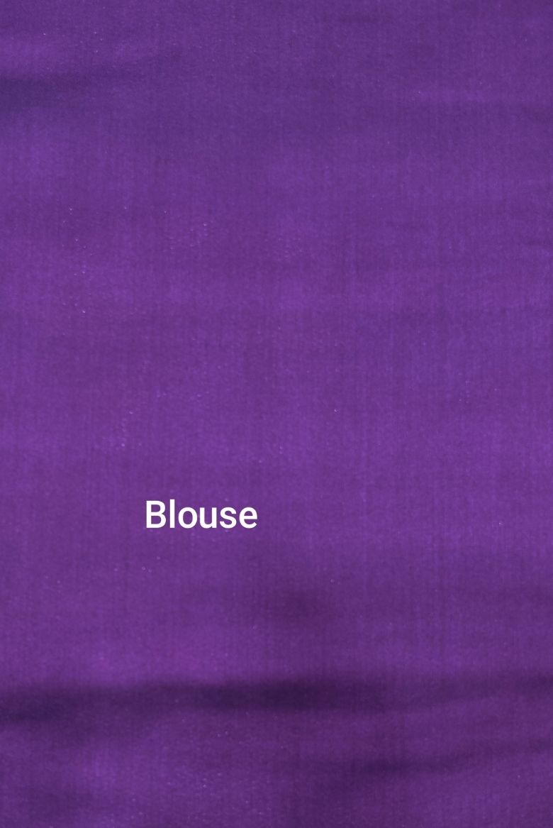 This saree features intricate zari-woven motifsall over, which are often inspired by traditional South Indian temple architecture, floral patterns. The saree enhanced by a Royal Purple border having golden zari temple and heavy pallu design.
