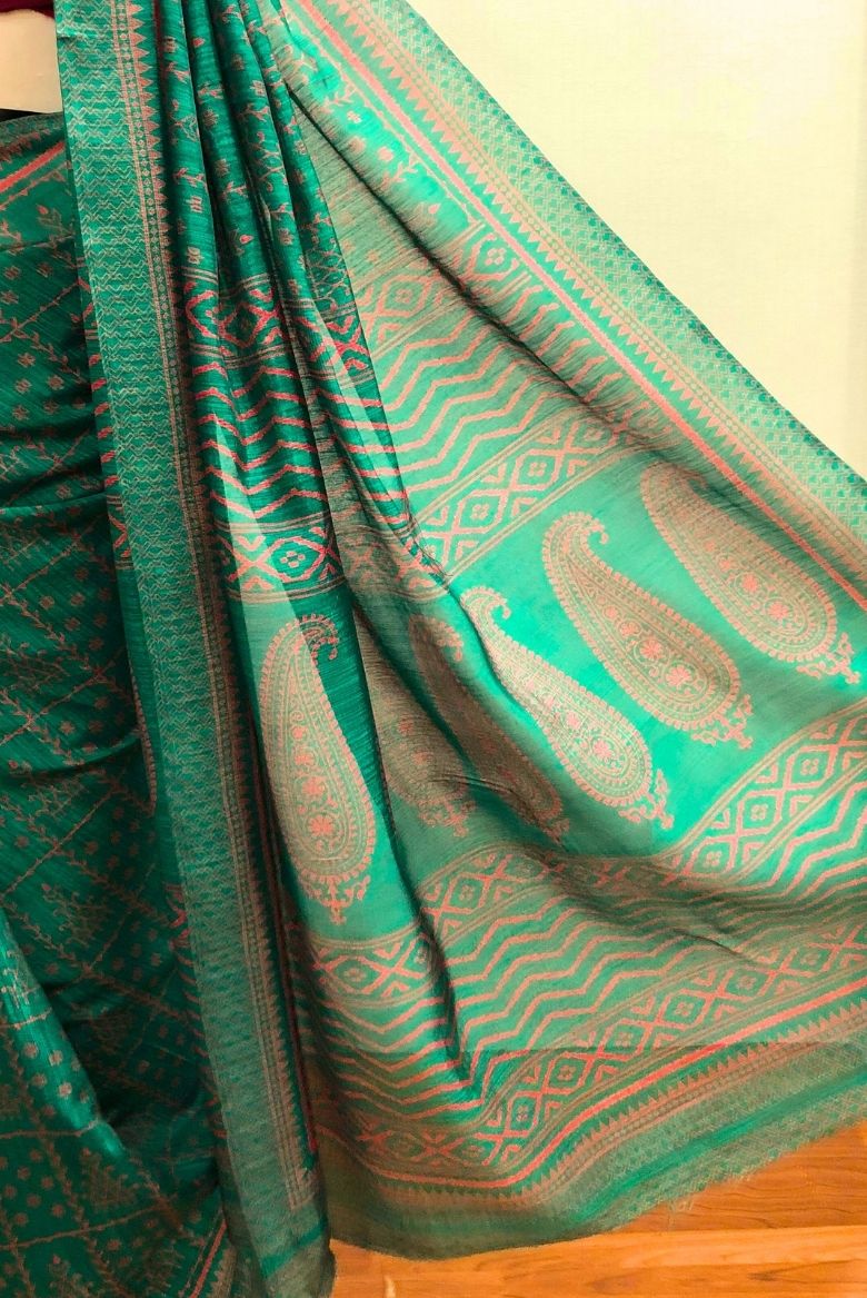 Peacock Green Cotton Silk Blend Saree