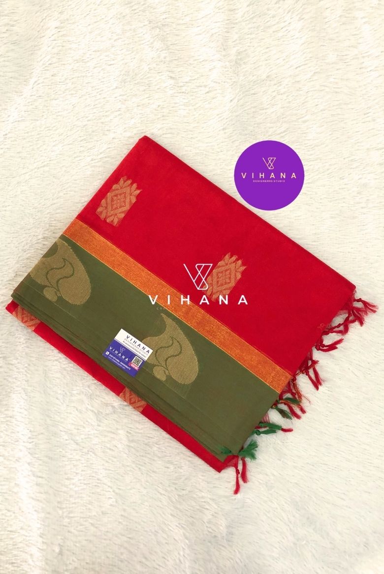 Pinkish Red Pure Handloom Soft Cotton Saree