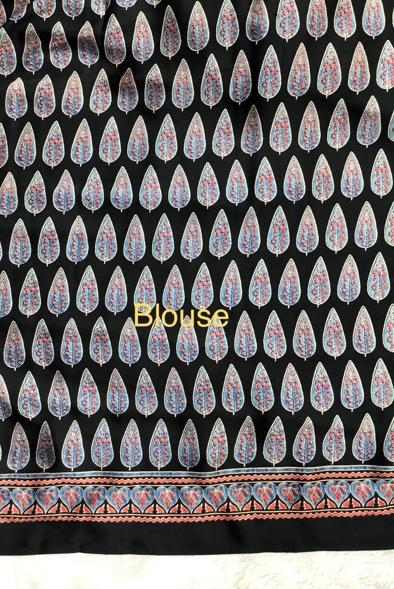 Premium Gajji Modal Silk Saree with Ajrakh Hand Block Prints-Black