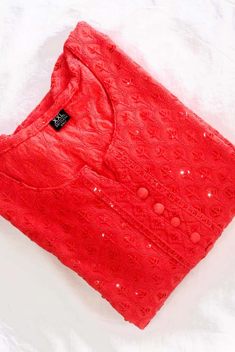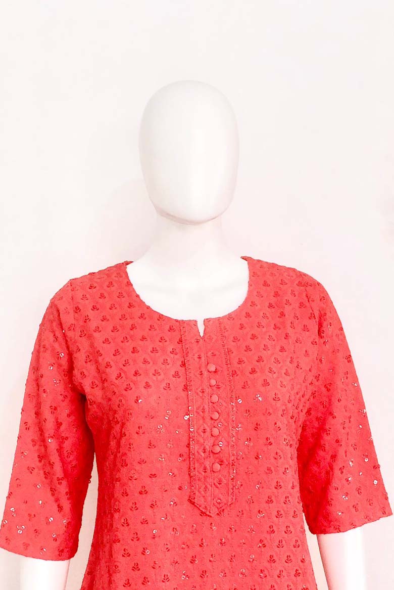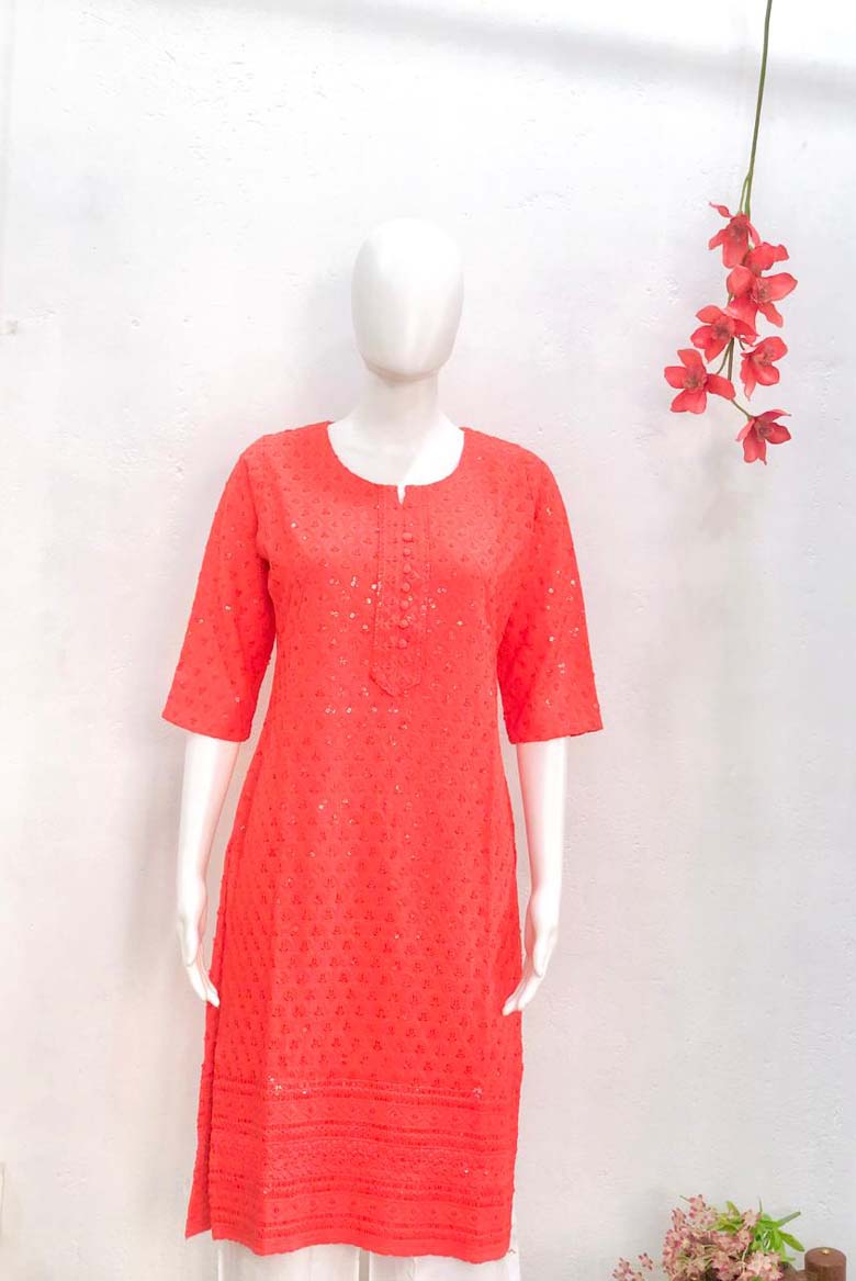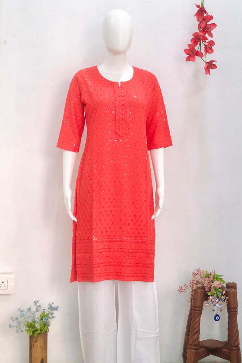 Premium Viscose Rayon Lucknowi Chikankari Embroidered with Sequin Work Straight Kurta for Women