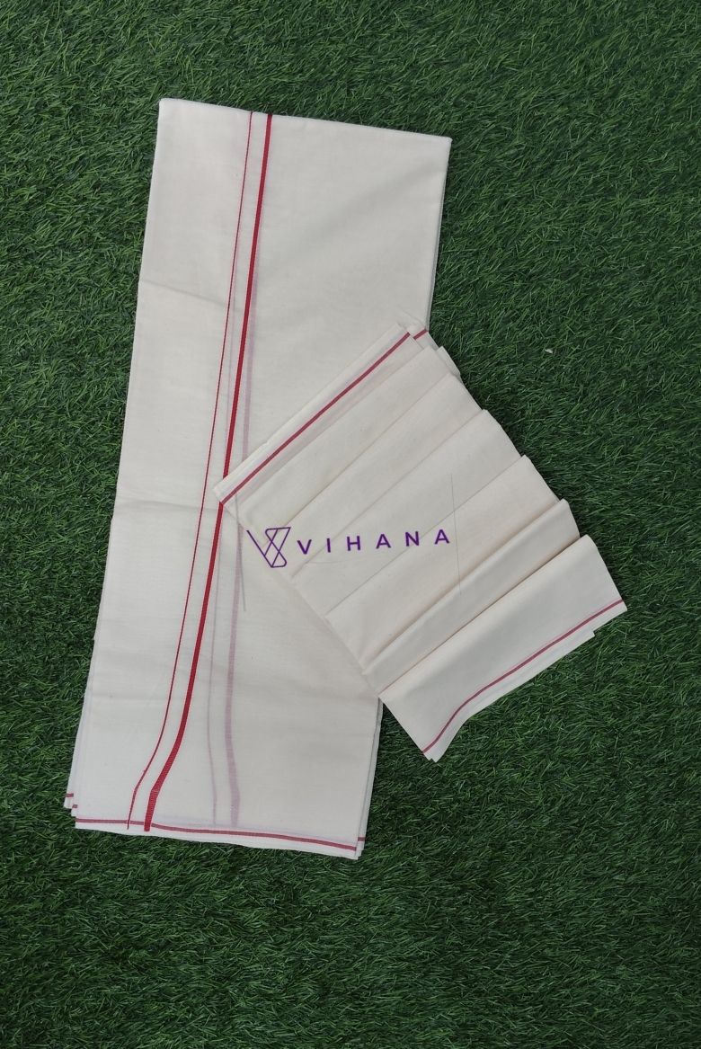 Set mundu Color: Off-White with thin red kara