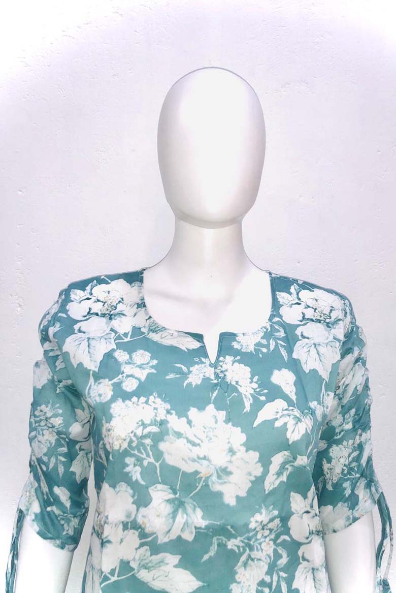 Pure Cotton Floral Print Straight Regular Fit Kurti Top with Lining for Girls & Womens -( color- Pastel Green)