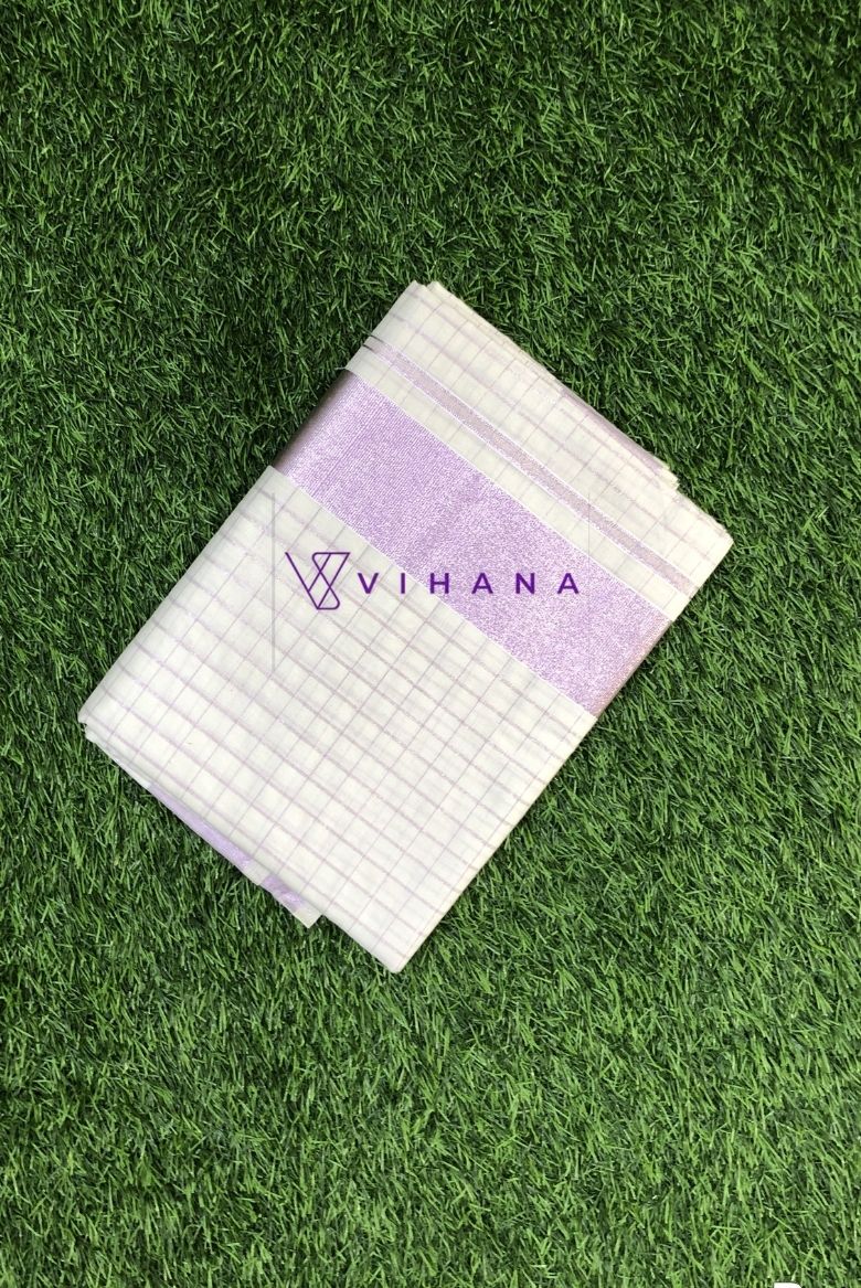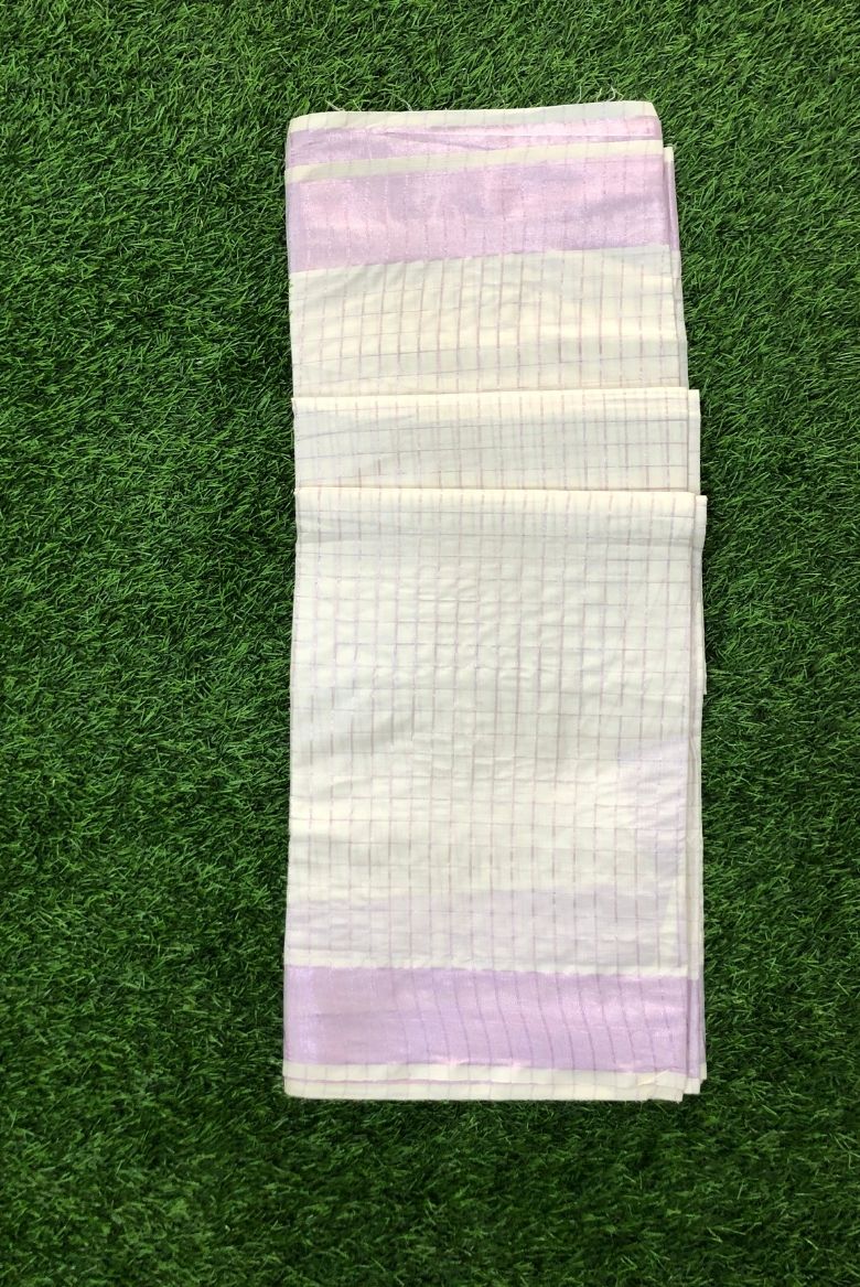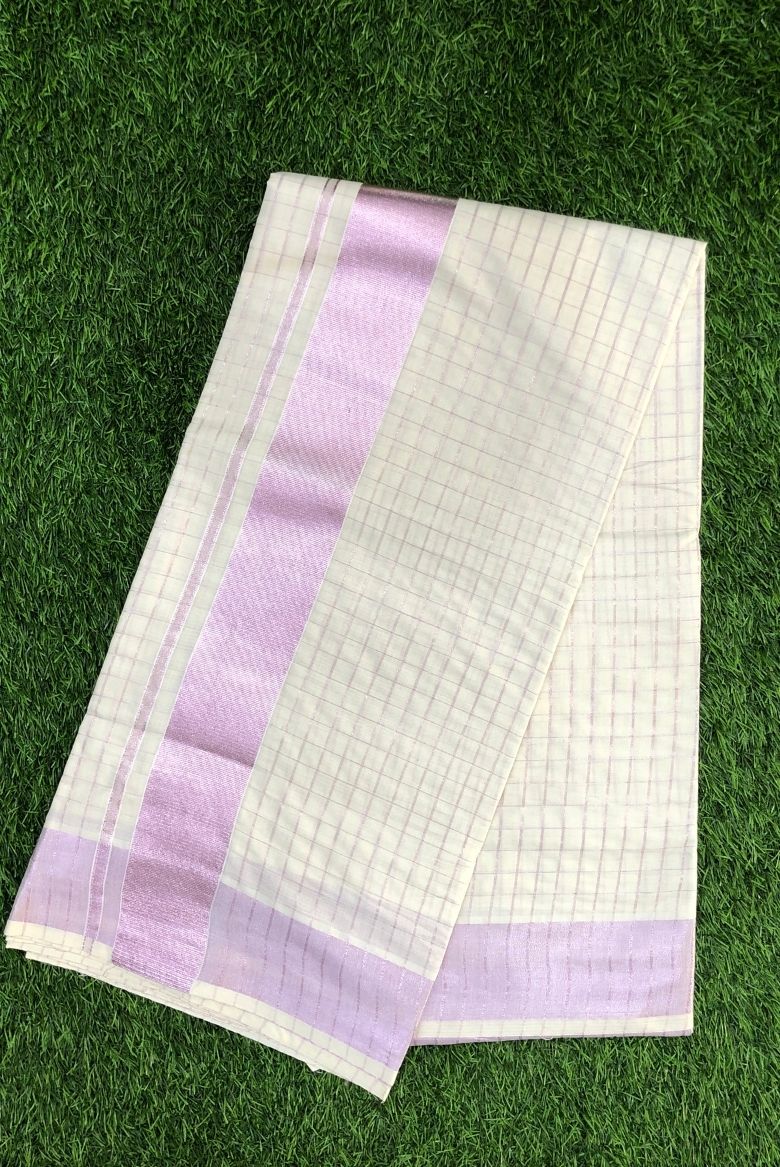 Rose Gold Checkered Kerala Cotton Set Saree