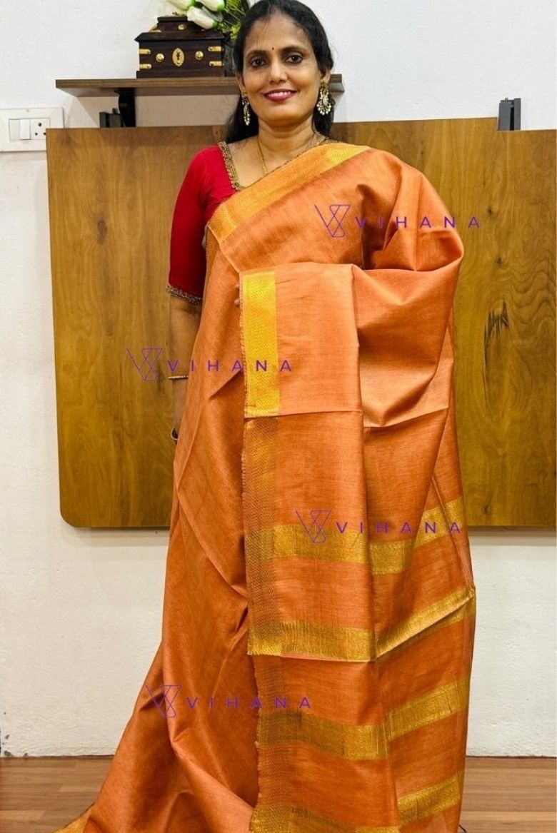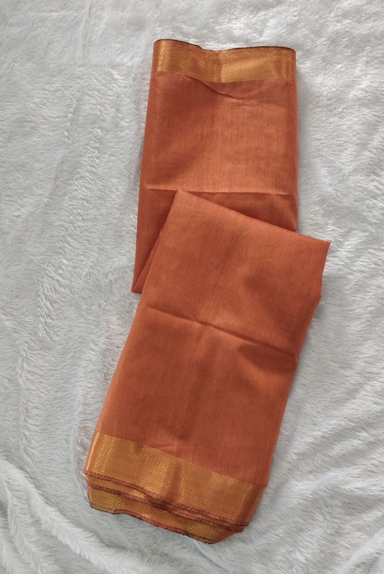 Rust Orange Maheswari Semi Tussar Silk Saree