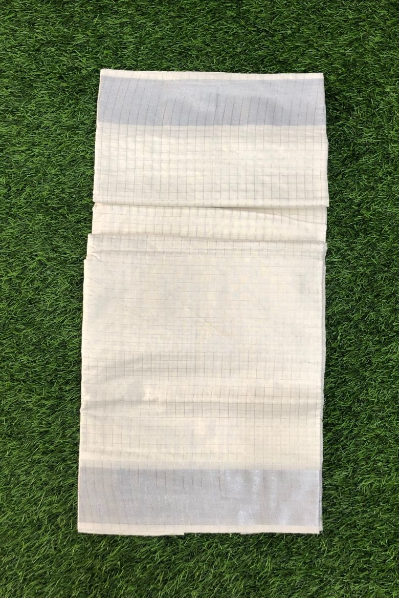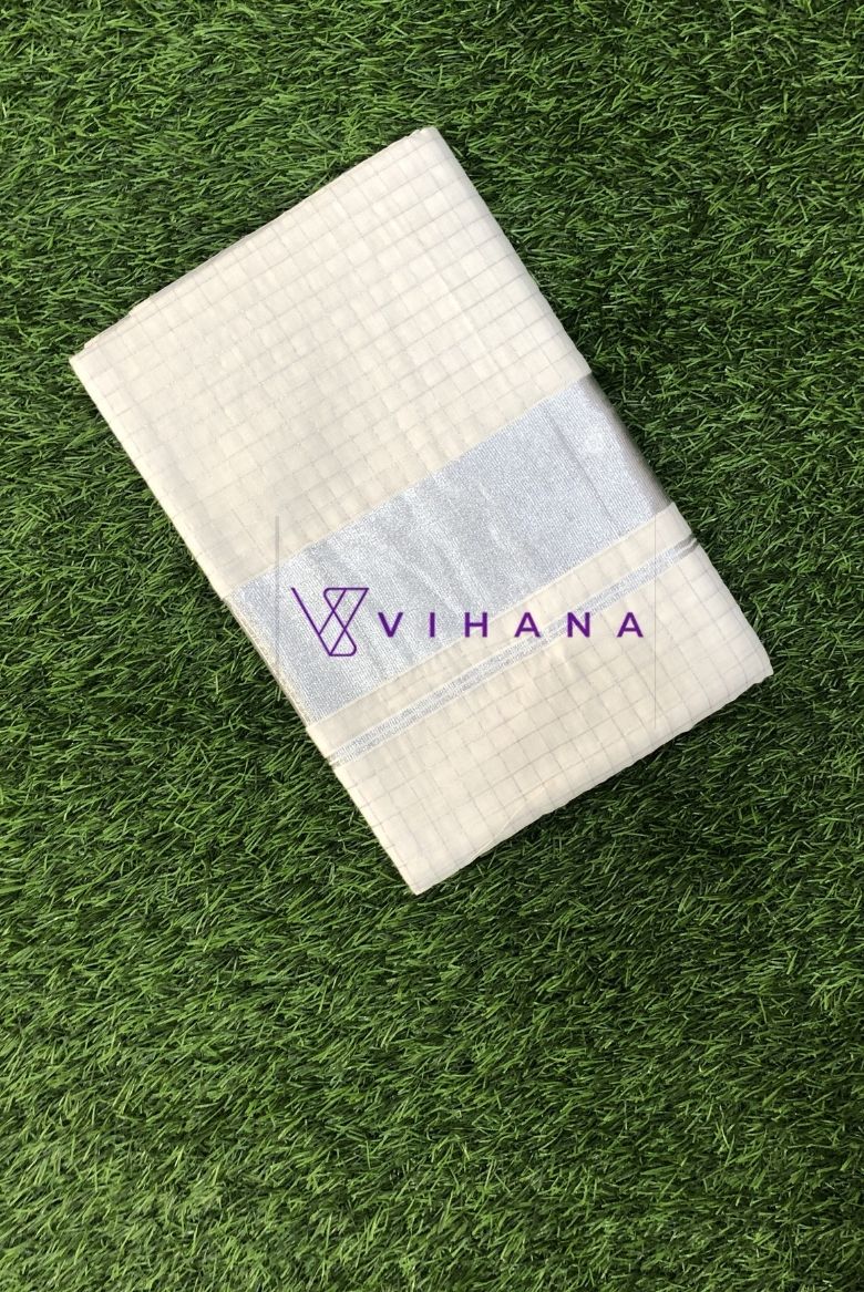 Silver Checkered Kerala Cotton Saree