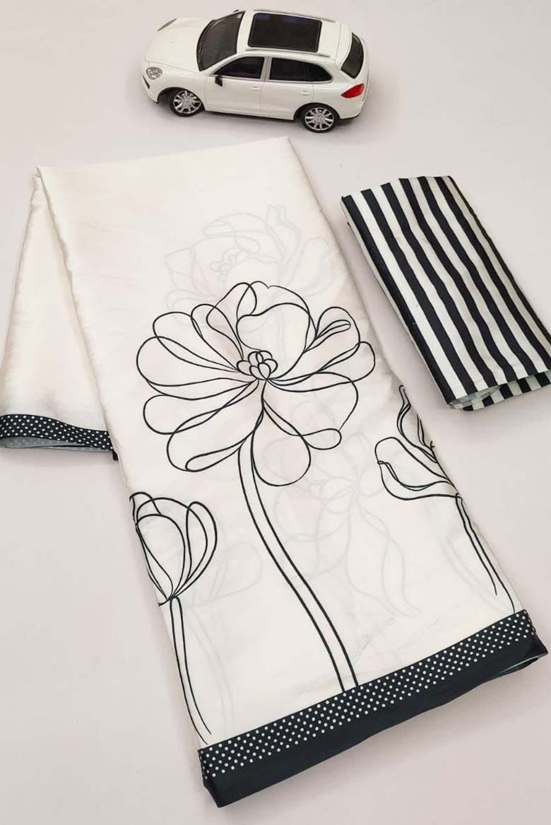 Sophisticated Splendor White color Japan Satin with Digital print Saree from Vihana